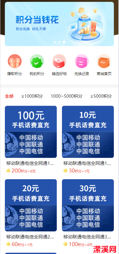 最近,潆溪商城在做活动,各项福利送不停,最明显的一个活动就是可以用积分兑换话费,笔者在这里总结出了一个利用120元可以撸210元话费的功能。